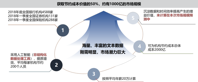 隨著數(shù)字化進(jìn)程的加快,以文檔、圖像等為載體的非結(jié)構(gòu)化數(shù)據(jù)占據(jù)企事業(yè)單位數(shù)據(jù)總量的80%以上,其結(jié)構(gòu)化分析和內(nèi)容提取成為關(guān)乎企業(yè)數(shù)字化轉(zhuǎn)型成敗的關(guān)鍵一環(huán),自動(dòng)、精準(zhǔn)、快速的信息處理對(duì)于生產(chǎn)力的提升至關(guān)重要,各行業(yè)急需非結(jié)構(gòu)化數(shù)據(jù)的結(jié)構(gòu)化處理能力和平臺(tái), 市場(chǎng)規(guī)模預(yù)計(jì)高達(dá)數(shù)千億元。