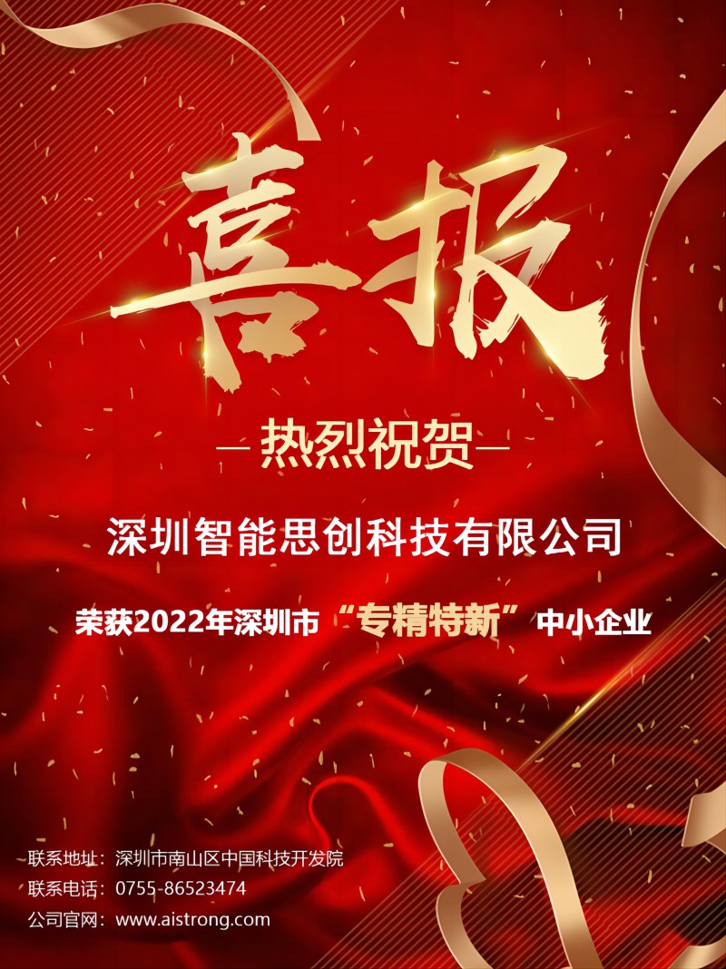 3月15日,深圳市中小企業(yè)服務(wù)局發(fā)布了《關(guān)于2022年深圳市專精特新中小企業(yè)名單的公示》,憑借技術(shù)創(chuàng)新和商業(yè)實踐方面的杰出表現(xiàn),智能思創(chuàng)成功成為深圳市專精特新企業(yè)的一員,這將是一個重要的里程碑,證明了我們在技術(shù)研發(fā)、市場開拓、人才培養(yǎng)等方面的實力和成就。