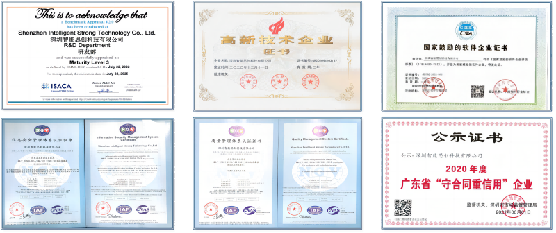 智能思創(chuàng)堅持用創(chuàng)新技術(shù)打造“專精特新”技術(shù)和產(chǎn)品。在自主知識產(chǎn)權(quán)方面取得了15項技術(shù)發(fā)明專利和34項軟件著作權(quán)登記的創(chuàng)新成果,在人工智能與自然語言處理等相關(guān)領(lǐng)域的頂級國際會議上發(fā)表了50多篇高水平學(xué)術(shù)論文,智能思創(chuàng)已取得 ISO 27001 信息安全管理體系認證與 ISO 9001 質(zhì)量管理體系認證,以及具備了國家高新技術(shù)企業(yè)、CMMI3、科技型中小企業(yè)、軟件企業(yè)與軟件產(chǎn)品認證等資質(zhì),在軟件研發(fā)、項目實施等領(lǐng)域具有較完備的質(zhì)量控制機制。