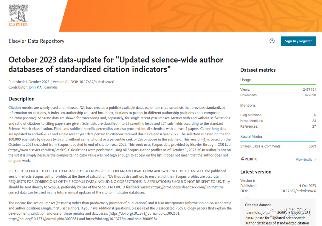 作為目前國(guó)際上權(quán)威的學(xué)術(shù)評(píng)價(jià)體系之一,該榜單分為兩個(gè)類(lèi)別,即“終身科學(xué)影響力排行榜”和“年度科學(xué)影響力排行榜”,分別對(duì)應(yīng)1960-2022年及2022年度兩個(gè)時(shí)間區(qū)間綜合數(shù)據(jù),并從全球近700萬(wàn)名科學(xué)家中遴選出世界排名前2%的科學(xué)家。其中入選者需要滿(mǎn)足至少100次論文引用,且總被引次數(shù)排名在前2%的要求,以此體現(xiàn)其在各領(lǐng)域中具有的重要影響力。