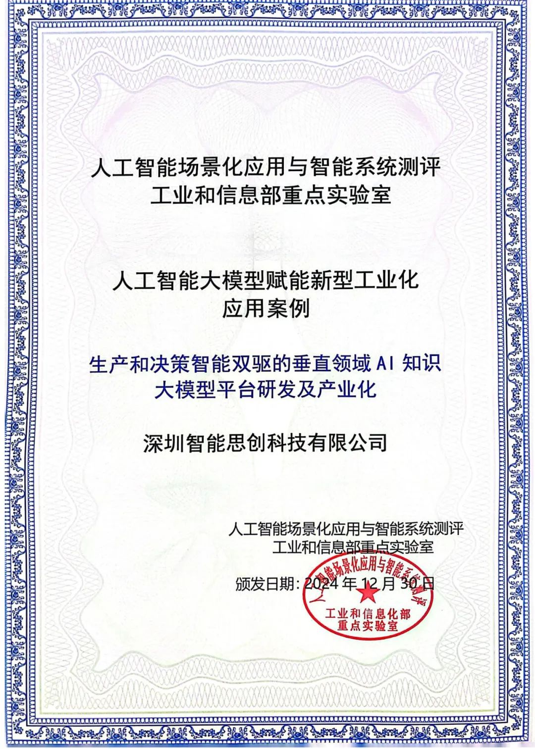 喜訊傳來,砥礪前行!在我國大力推進新型工業(yè)化、發(fā)展數(shù)字經(jīng)濟的關(guān)鍵時期,智能思創(chuàng)的一款生產(chǎn)和決策智能雙驅(qū)動的垂直領(lǐng)域AI知識大模型平臺研發(fā)及產(chǎn)業(yè)化案例成功入選人工智能大模型賦能新型工業(yè)化應用案例!這不僅是對我們企業(yè)實力的認可,更是對我國人工智能產(chǎn)業(yè)發(fā)展的有力推動。